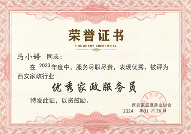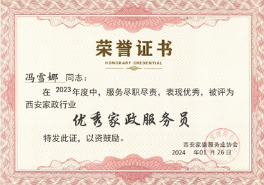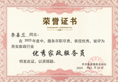 西安燕子月嫂榮譽和資質